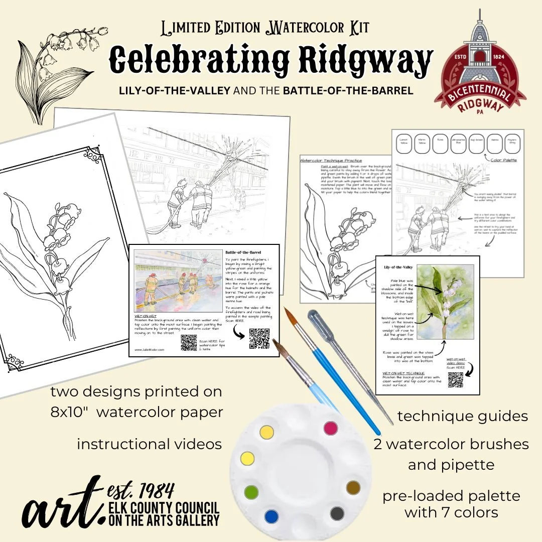 The Elk County Council on the Arts is a non-profit sales gallery located in beautiful downtown Ridgway, Pennsylvania. We offer a wide variety of affordable items from 50+ local artisans. These items include one-of-a-kind jewelry, pottery, photography, mixed media, painting, wood-turning, and much more.